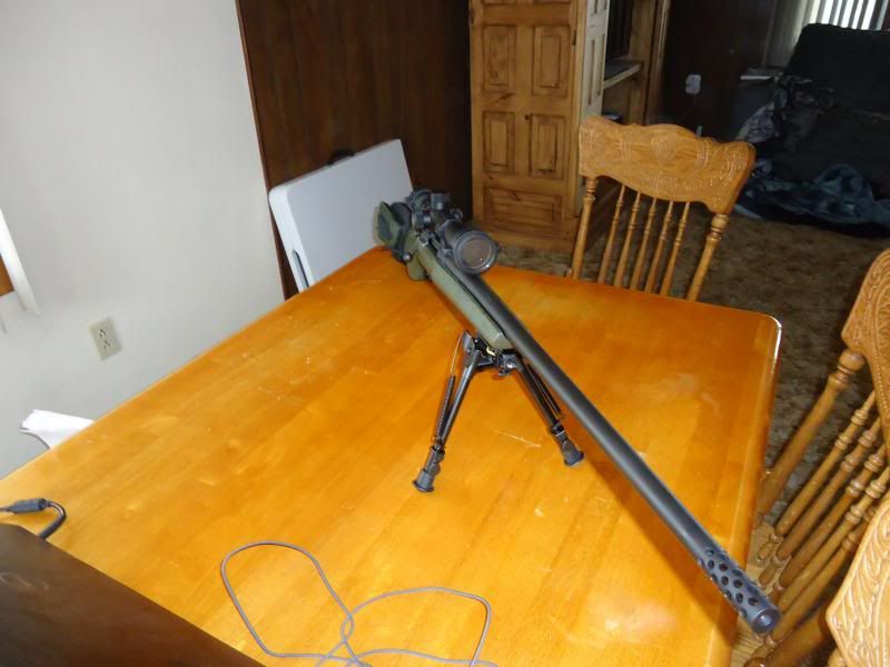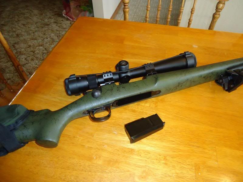 Just picked it up. Started with a $250 700ADL, Lothar Walther barrel, gunsmith cut the 7mm Rem Mag chamber and threaded for action and for the muzzle brake. Bell and Carlson light tactical stock, Vortex Viper 6.5x20x44AO scope in Weaver mounts, Kwik Clip bottom metal and bipod. Gunsmith put a nice, dark (almost black) matte blue on it. Turned out a bit heaver than I thought it would at just under 12 pounds as you see it, unloaded. I shot it at the gunsmiths just for a verification, thing kicks like a 223 or 22-250.Now to find time to get out and sight it in and see what it will do.