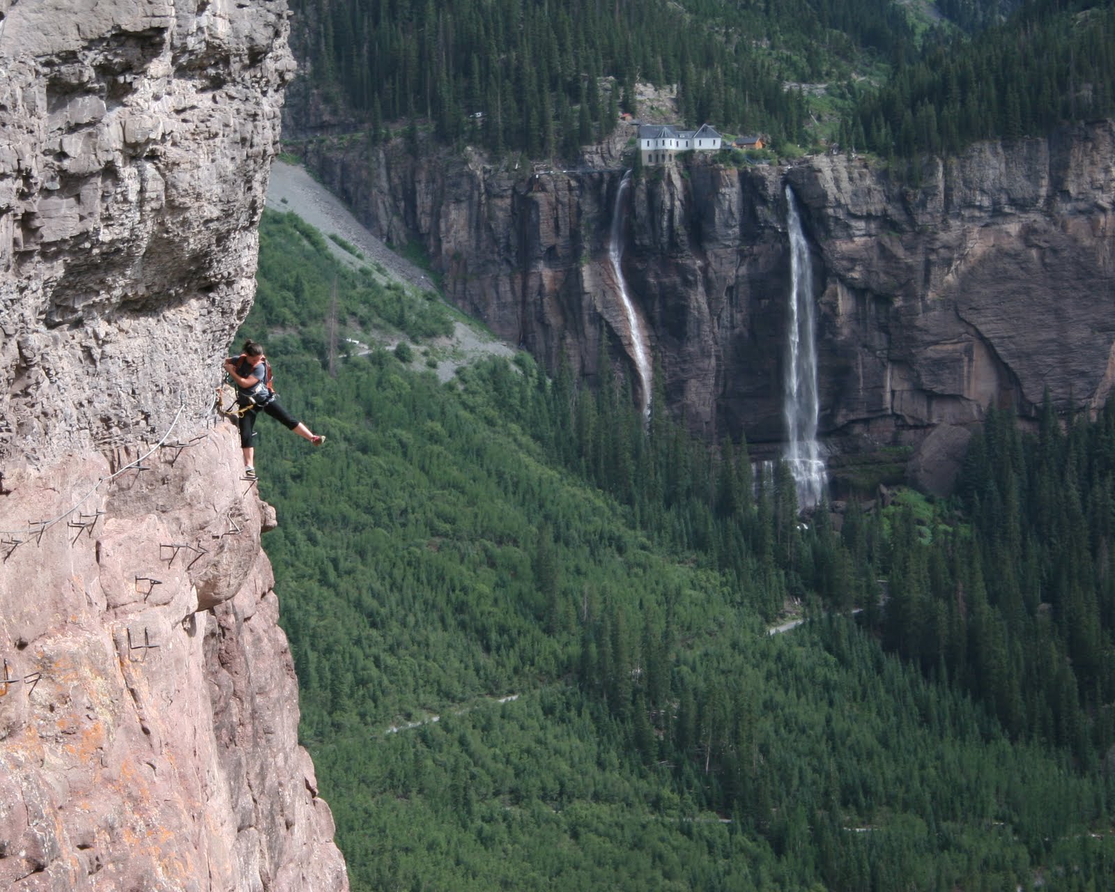 If I recall, "via Ferrata" refers to the type of trail that is (requiring clipping into the cable). Look up "Falls Walls" in Telluride. There's a via Ferrata section on that if I recall.