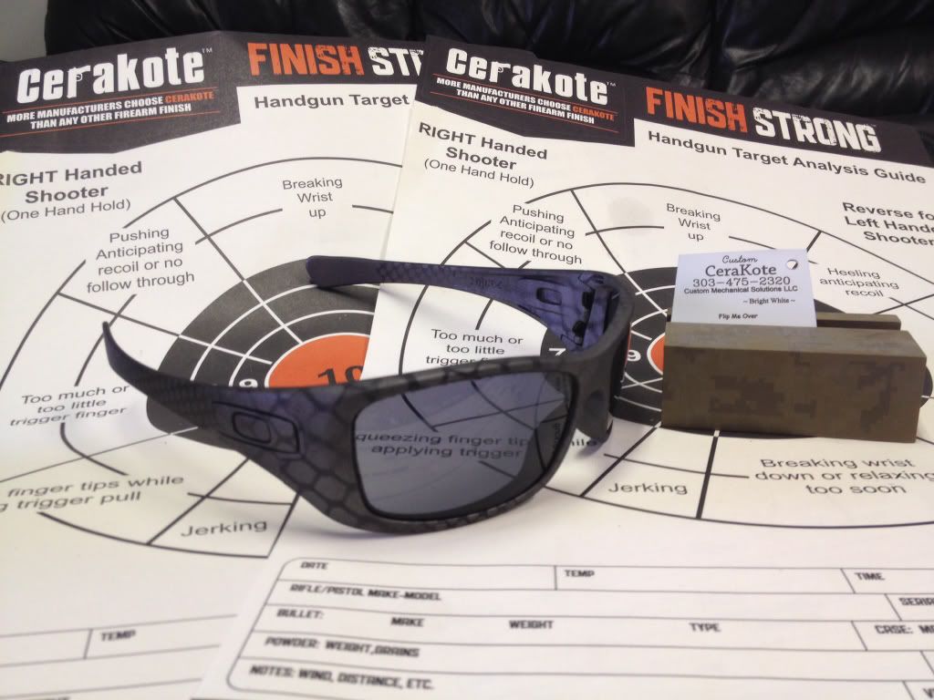 Here's some samples of what my buddy can do. He just ordered some plastics to do different size snake skins and also has a laser etcher to make custom stencils. I'll be dropping off a couple pair of Oakleys to him friday!!