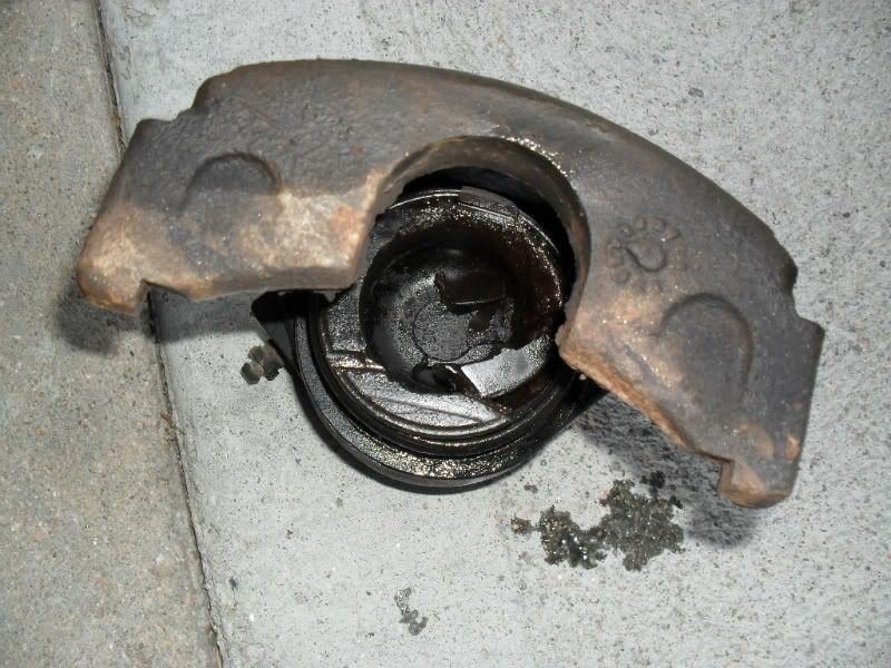 Also, the master brake cylinder was dead but I still had no brakes. So I took off the front left wheel and found this