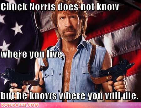 When Chuck Norris went off to college he told his dad that he was the man of the house now.