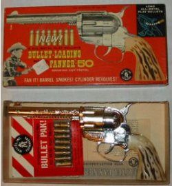 I remember those, I had the Mogambo Hunting rifle set and later on the Johnny Seven OMA, it even fired various projectiles: bullets and rockets, grenades. I had a Mattel Tommy Burst which was a full auto cap gun and a lever action that you loaded a bullet into a cartridge case under spring pressure and it shot it across the room and at 10 feet would punch a hole through a paper target. Terrific toys for sure.