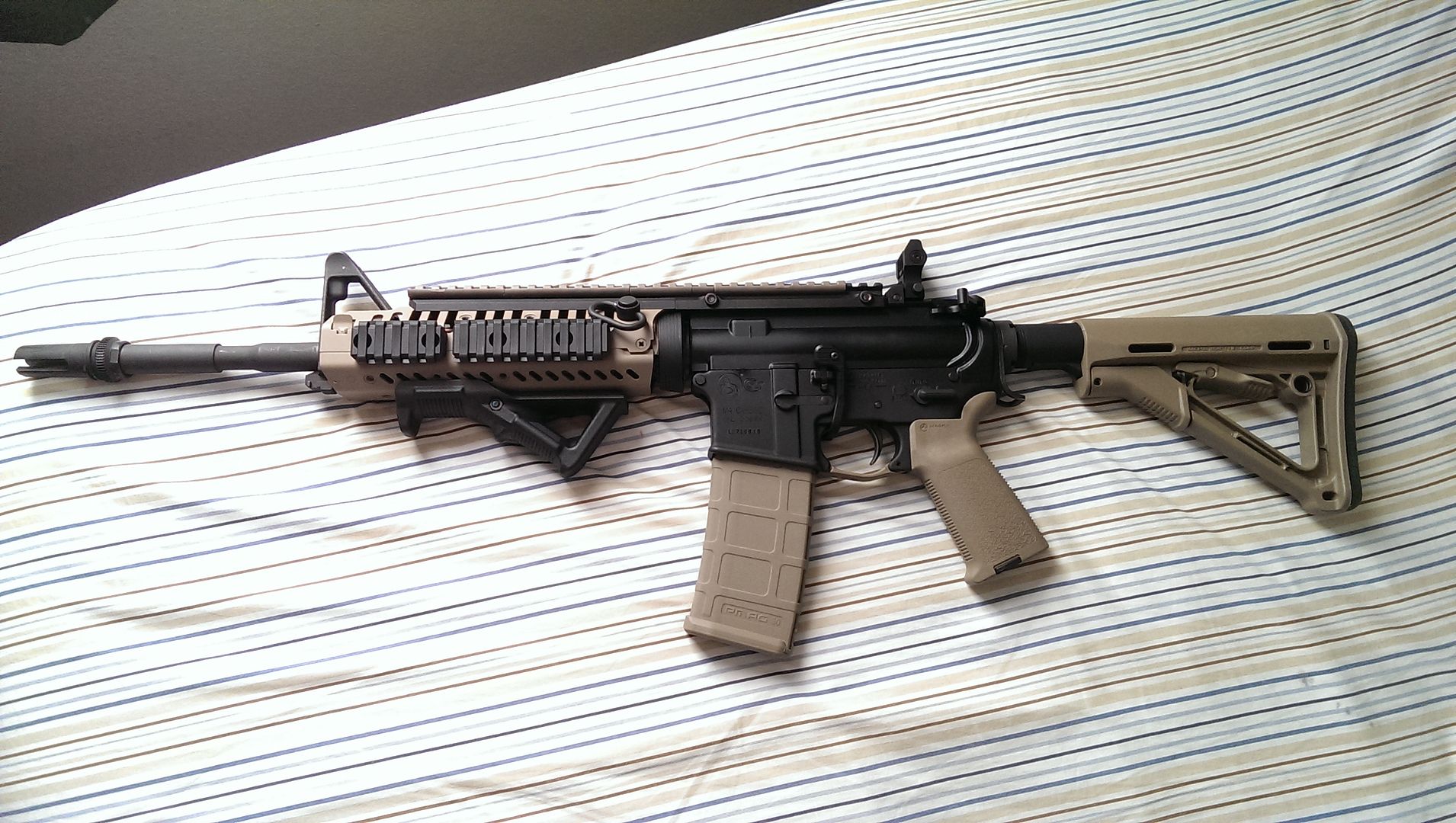Sweet lookin' rifle! I have my 9mm AR set up very similar. I ditched the quad-rail recently and installed a keymod hand guard. It severely lightened up the rifle and makes it very pleasant to run & gun. BTW, I might be lookin' to go to the range on Sunday, I'll throw you a text.