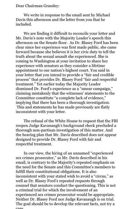 I may be entirely wrong on this, but I think this "third victim" might actually help Kavanaugh's chances at confirmation rather than harm them. This affidavit is so poorly written, incomprehensibly vague, it's outrageous in the context of the claims and it just reeks of being a hastily prepared outline of lies.