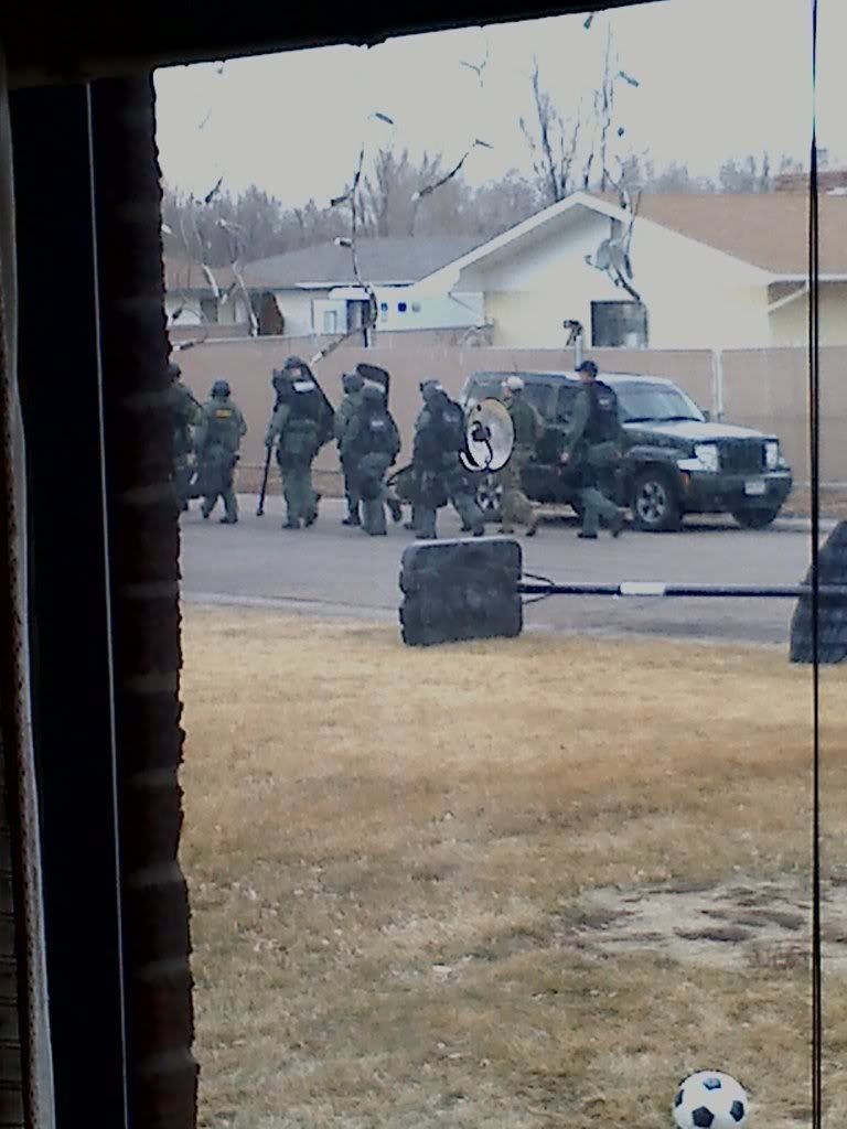 This was all I got. The family was not there according to the guy I talked to so that is good! No shooting, they blew the door and that was it.