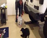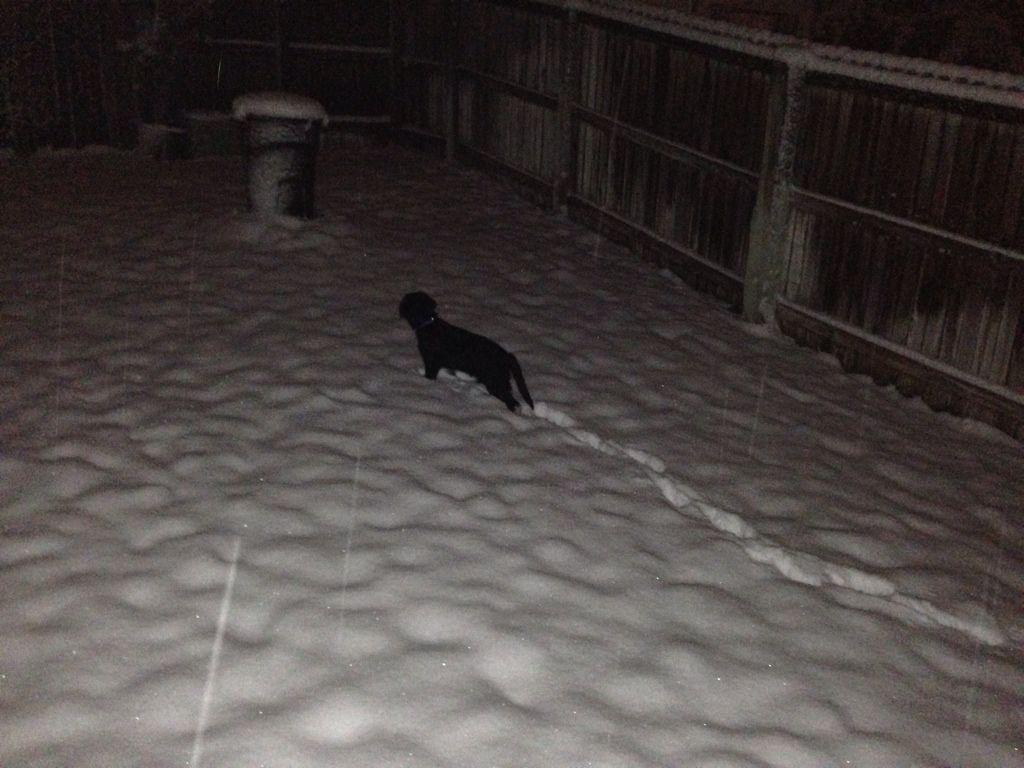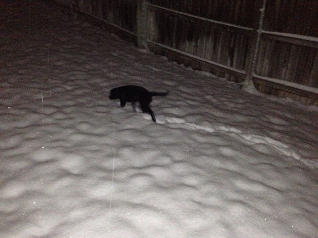 ^ That is quite impressive! Today was the first day Alamo has seen any snow. He was having a great time until he saw the trash can in the backyard. He went running for his mommy! We have also been working on his tricks and he is progressing nicely.