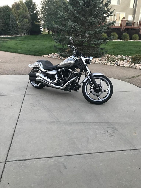 Well, I met up with the guy that owned the Raider last night and we struck a deal on my FZ09. I actually ended up knowing the guy from a business relationship and he lived 10 minutes away from me. Seeing it in person, it did not have a single nick on it, I mean, not one single blemish. Everything was polished up nicely (I really dislike chrome) but it looked really clean. I hoped on it and loved it. Coming from many sport bikes, it felt like a lazy boy on wheels with the forward controls. The 1900cc put down some decent power, not quite like I thought it would but I am used to a different platform. Don't get me wrong, it was no slouch and would run up to 85mph in a hurry but I am used to wrist snapping, high RPM, hold on to your lug nuts kind of power; not smooth torque delivery. Anyways, the old lady gave it the seal of approval as long as it did not keep her from parking in the garage. I had to do some shuffling around and I quickly realized what a long bitch it really was but made her fit. Anyways, here is some pictures of it and I look forward to learning all about it. Appreciate all the advice given!