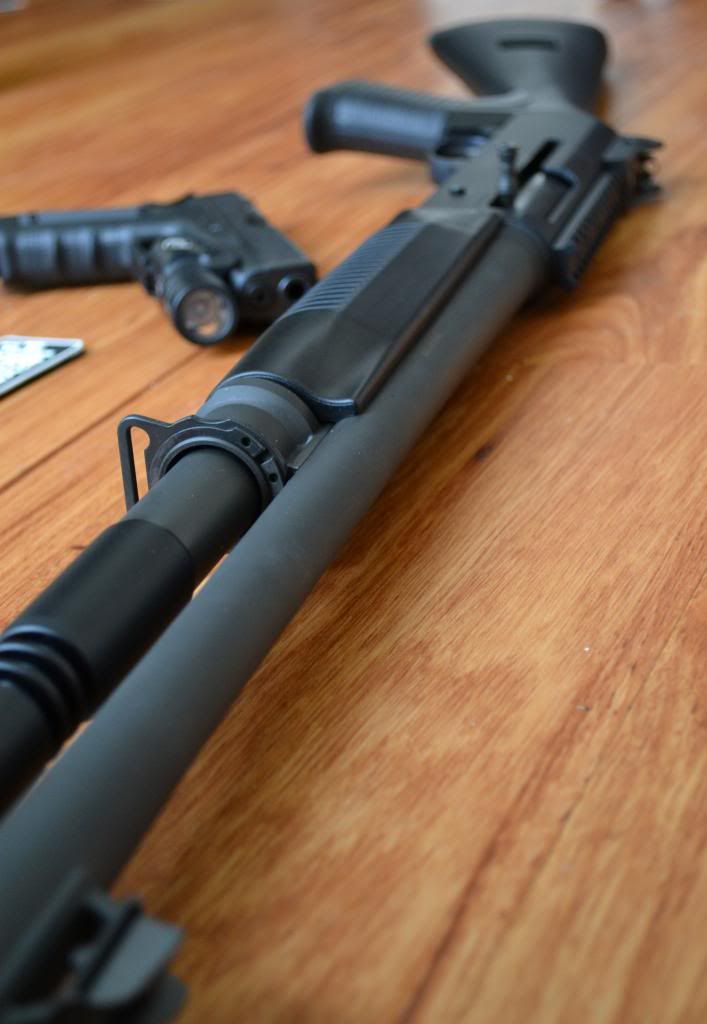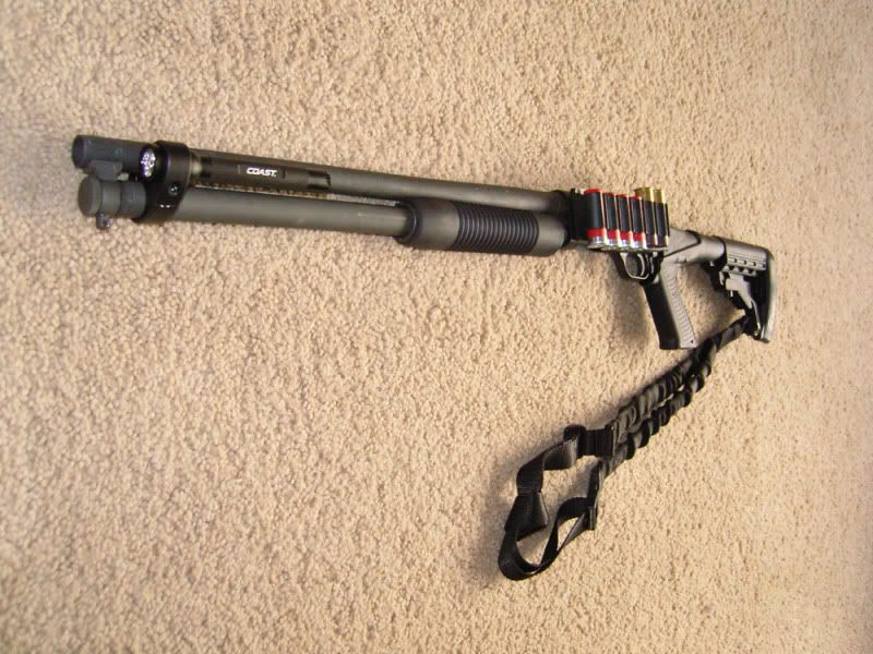 I just picked up a home defense shotgun. I've always had a sawed off Mossberg 500 but now that I have a nice one, I'm looking for some Ideas. I was thinking about a Ghost ring sight but I'm not sure yet. I thought maybe you guys could post up some of yours and give me some ideas.