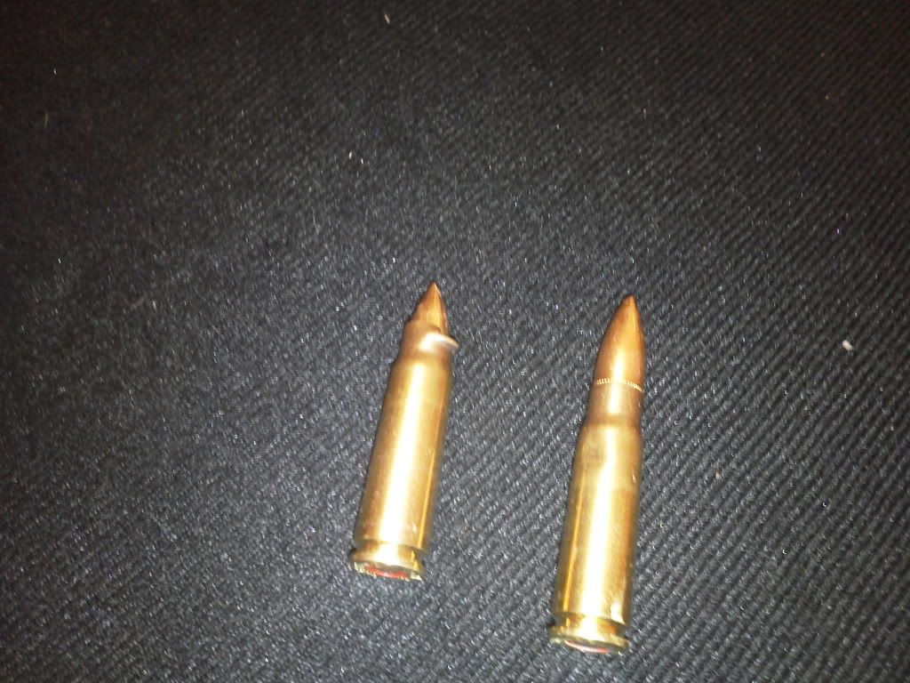 When the round is chambering, something is catching the bullet/casing and jamming the bullet back into the casing and crushing/ dimpling the case. The photos show the PMC ammo, but he claims to have tried several types of ammo and they all suffered the same result. This occurs right away it is not an issue when it is cold/hot or just a random occurrence, it happens all the time.