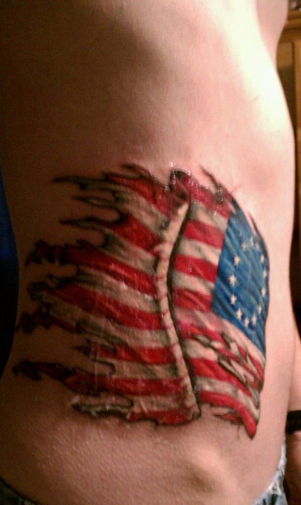 I don't know, we're not talking about displaying the flag here, we're talking about artwork. So I think a certain amount of artistic license is acceptable, within the limits of respect and good taste. God only knows how many flag-based designs have been done. Hell, look at all the flag-type artwork on cars, trucks and motorcycles over the years, and people don't get all bent about that! A tasteful tattoo is no different, IMO. Worst part is the ink fading over time. That part sucks.