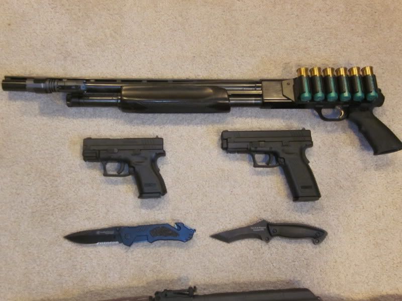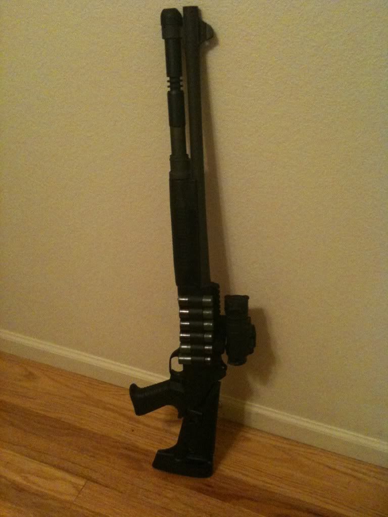 I just picked up a home defense shotgun. I've always had a sawed off Mossberg 500 but now that I have a nice one, I'm looking for some Ideas. I was thinking about a Ghost ring sight but I'm not sure yet. I thought maybe you guys could post up some of yours and give me some ideas.