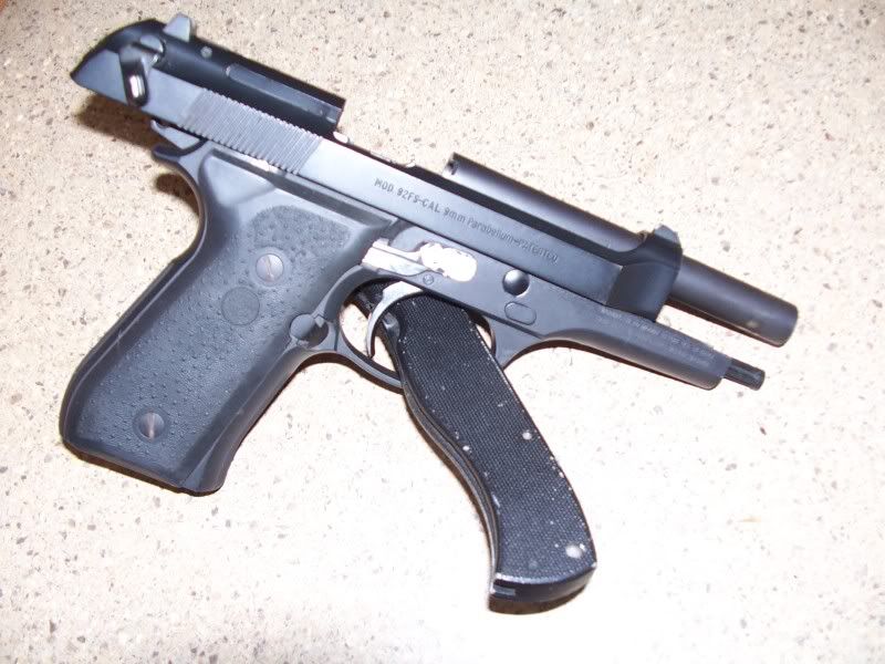 Beretta 92FS w/box, purchased brand new in either mid 02 or 03. It has hogue grips, regular sights