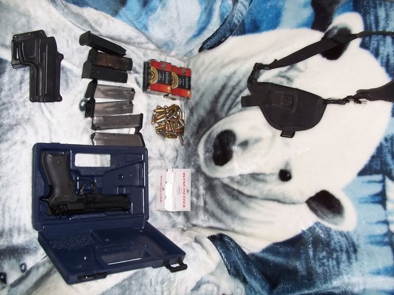 ive got a beretta 92FS that im contemplating letting go... its the last of all my 9mm shooters, so its the only reason i still have to have 9mm..... it has a nylon shoulder holster, nothing special, probably a $25 deal.... a handful of eagle 17rnders, 2 factory beretta 15rnders and whatever it came with, i dont think i ever used it. the pistol itself has probably 1000 rounds through it at the most, although i think its probably closer to 500, it left my hands for a period of time when my roomate bought it from me, but gave it back in leiu of rent....