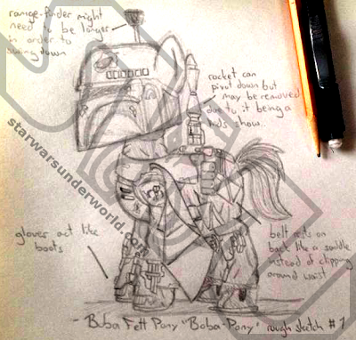 Along with the logo, the Disney insider was also able to send us a photo of the following early concept sketch featuring Boba Fett drawn in the My Little Pony style.