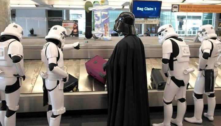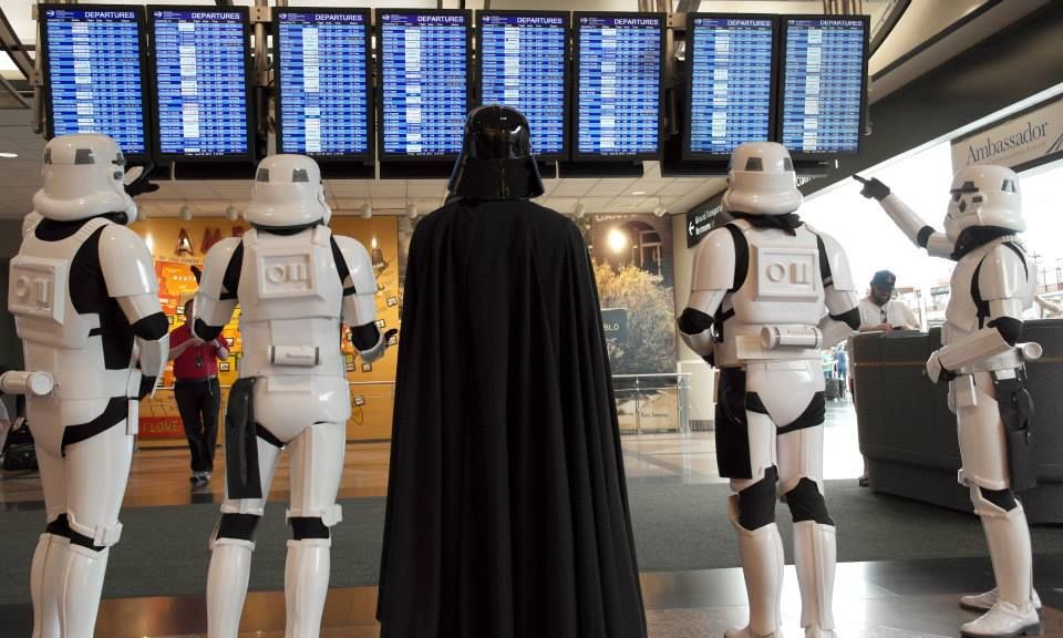 Notice in those pics that even the 501st Legion of Stormtroopers - "Vader's Fist" was disarmed. Apparently the Force has no power over the TSA.