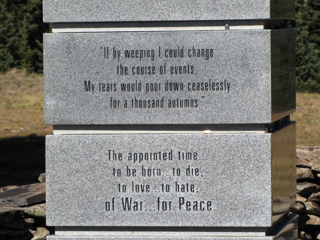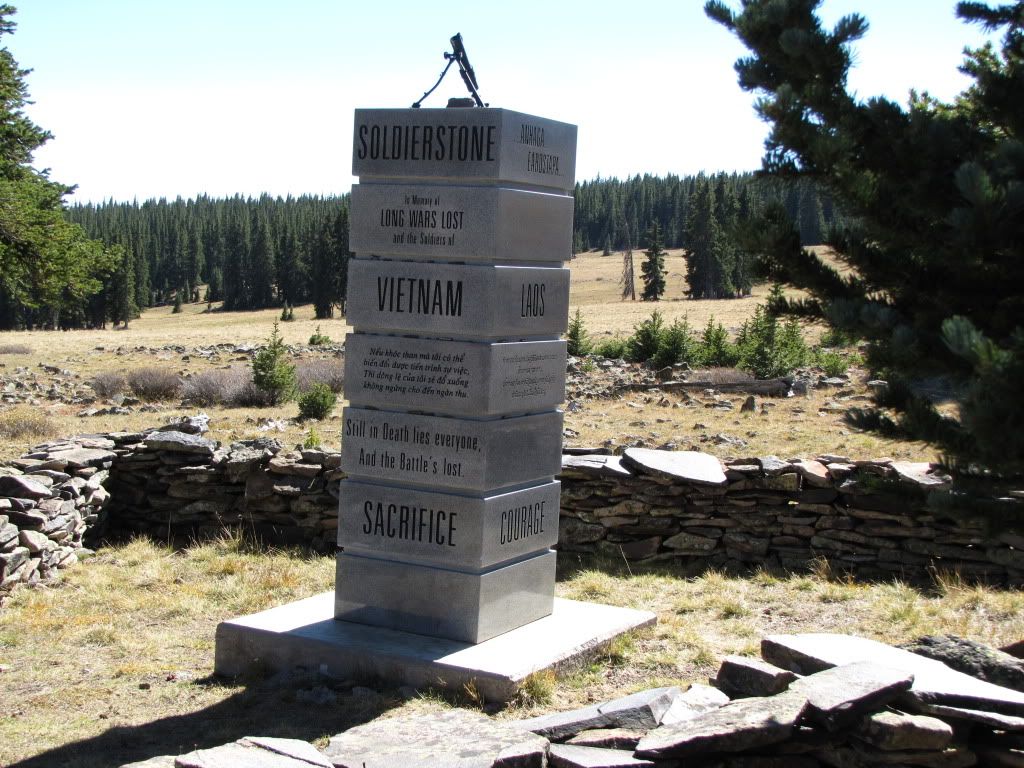 It's on top of Sargents Mesa, about 20 miles west of Saguache. Good dirt road all the way to the top. I hunted elk there for many years. There's a column in the center of a circle of small monuments, and on top of the column is a small 60mm mortar. I never had a camera with me to take pictures. Wish I had.