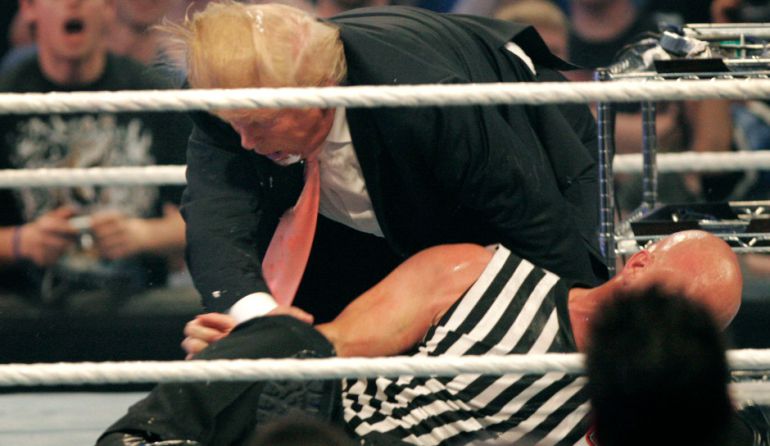 In WWE/WWF, he can beat up anyone including CEO of WWE Vince.
