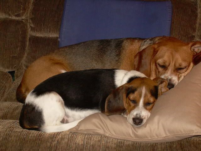 Thanks! Coco was still pretty new there, and she'd adopted Annie as her "surrogate mother" right away. Coco's mama looked a LOT like Annie, and Coco took to her right off, and they've been tight ever since. Annie wasn't too thrilled about having a puppy in the house at first, but they're inseparable now.