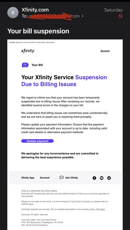 It never even occurred to me, but my gf is the that pointed the perfect timing and it was a planned attack. They knew my card got declined, and likely was cancelled and a new was issued. They may or may not have known I had my card on auto pay with Xfinity, but they waited a few days before sending the email. They also assumed/knew that it was due at the end/first of the month so it was all about timing. I really can?t believe I fell for it. My gf even made a comment about it, as she knows I?m a freak about security. This isn?t a pity but a reminder to be careful. These hackers are getting smarter and more clever each day. I?m hoping that with all the new security features available through Chase and Experian, nothing major comes of it. I have a 12 month protection plan in place, and my credit completely locked. If someone runs my credit, it will be declined, and it will notify the company running it it?s locked due to identity theft.