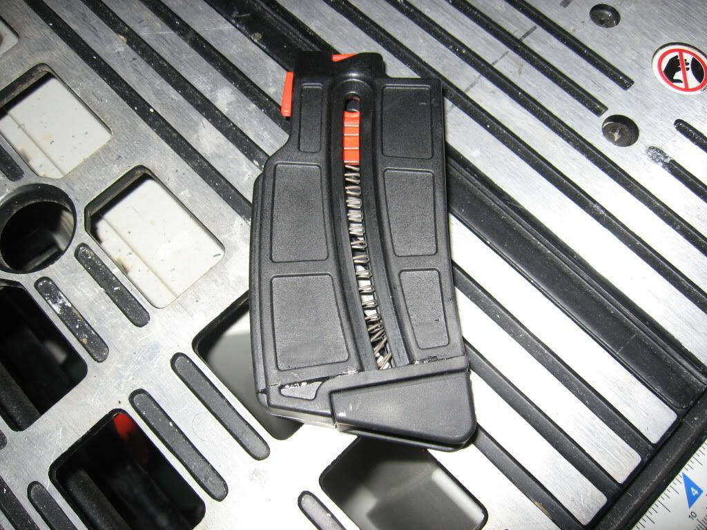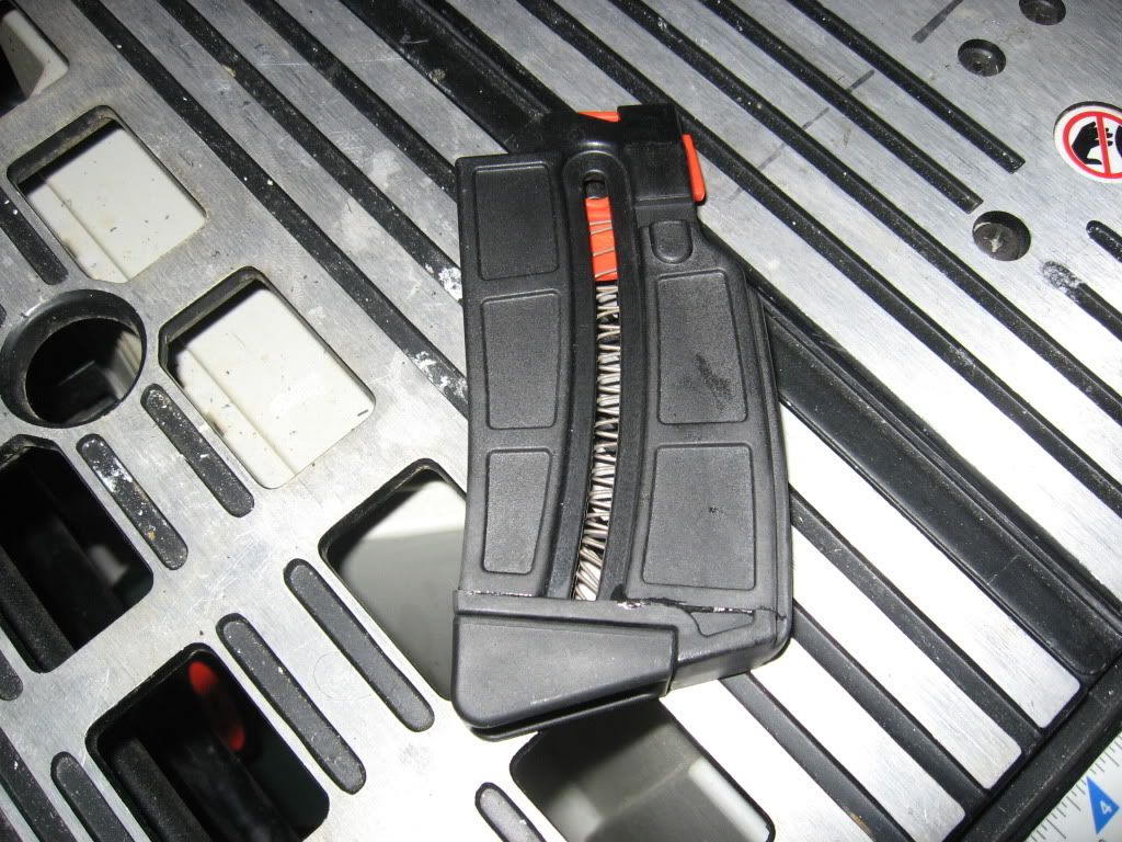 Basically what I did was cut the bottom off so I could use the stock floor plate, cut a section out of the center of it, and cut down the spring. Then used an industrial 2 part epoxy and glued the 2 sections back together. So now I have a 10 round mag that looks better and is much more convenient if I am going to be bench shooting.