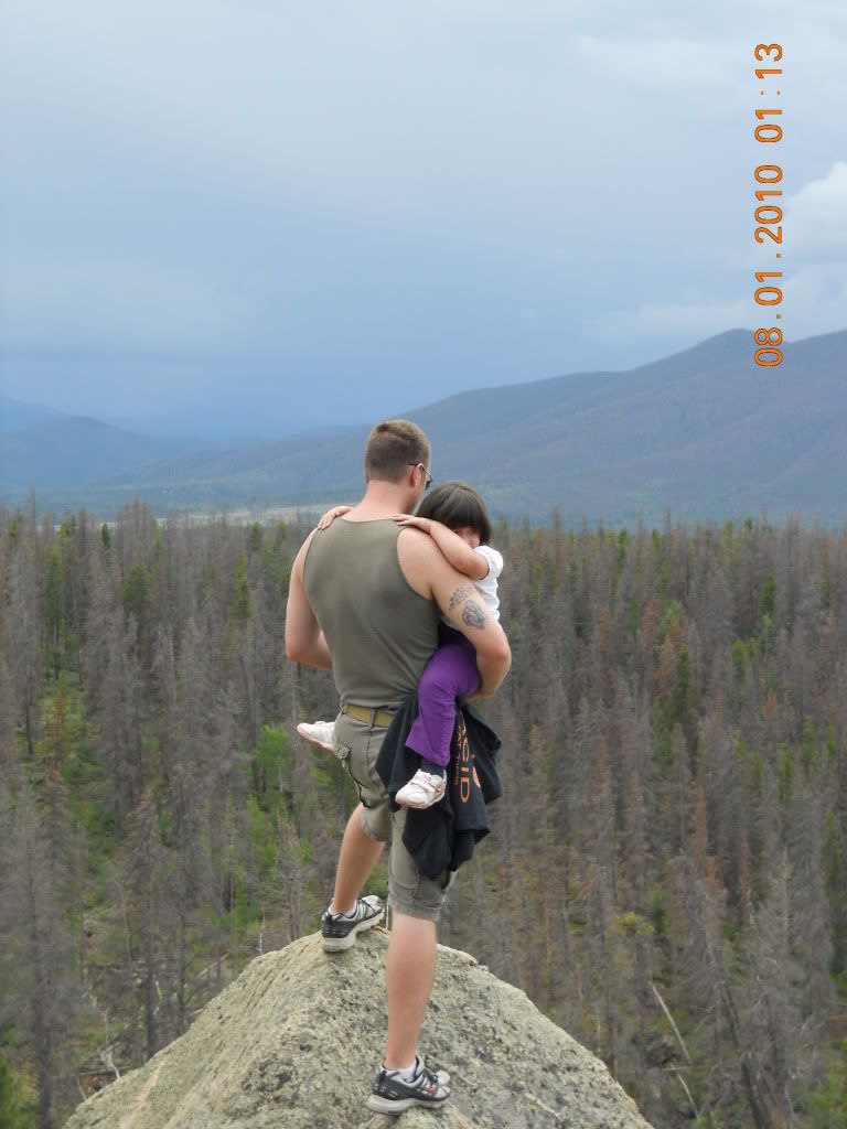 In the pic just before the lake pic, the one where you are holding the little girl (your daughter?) while standing on the rock, looking (way) down to th woods below makes me think of the scene in Lion King where Mufasa holds Simba up to the members of the jungle below.
