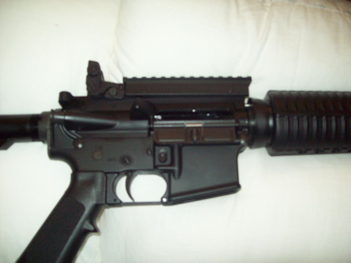 Just bought a DPMS "mid-length" on Saturday, in beautiful condition. Seller said he'd only fired 92 rounds through it, and it looks like it. Looks brand spanking new. Has a scope mount/rail on top, and a Magpul(?) flip-up rear sight, came with the case and all paperwork, two stock 30-round mags, and four Magpul 30-round mags. $800 for the package.