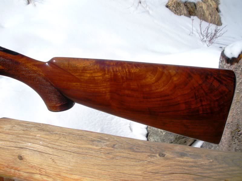 the barrels have been drilled and briley thin wall chokes installed and the shiny finish has been removed and a nice oil finish put on.