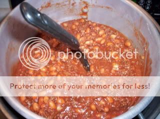 She made a big crock full of chili for a little get-together we're having tonight. She doesn't know but while she was in the shower and fixin' her hair I just had a large bowl (and another half)...just a sample, really...of the chili. Mmm, mmm, good!