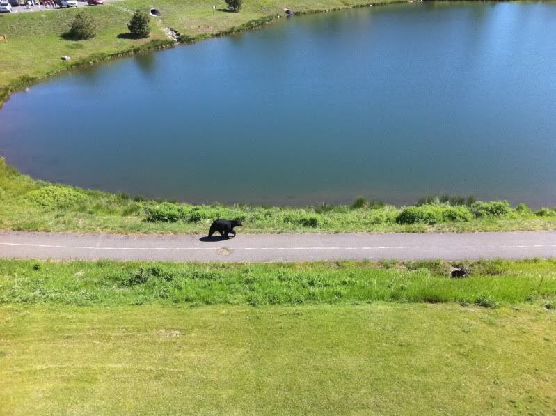 My mom just sent me this from a few miles down the road up here in Evergreen... a bear wandering around outside her office. Thought it was pretty neat and I'd share with you guys. The FedEx guy came in and told us about right before I got the email from the mom and said he almost hit it with his truck (brazen animal) and that the fire fighters at the station across the street were all outside checking it out. Now granted, we get bears and mountain lions up here, but never in a crowded area like where the office park my mom works at is.