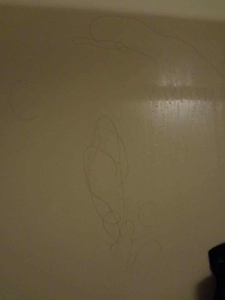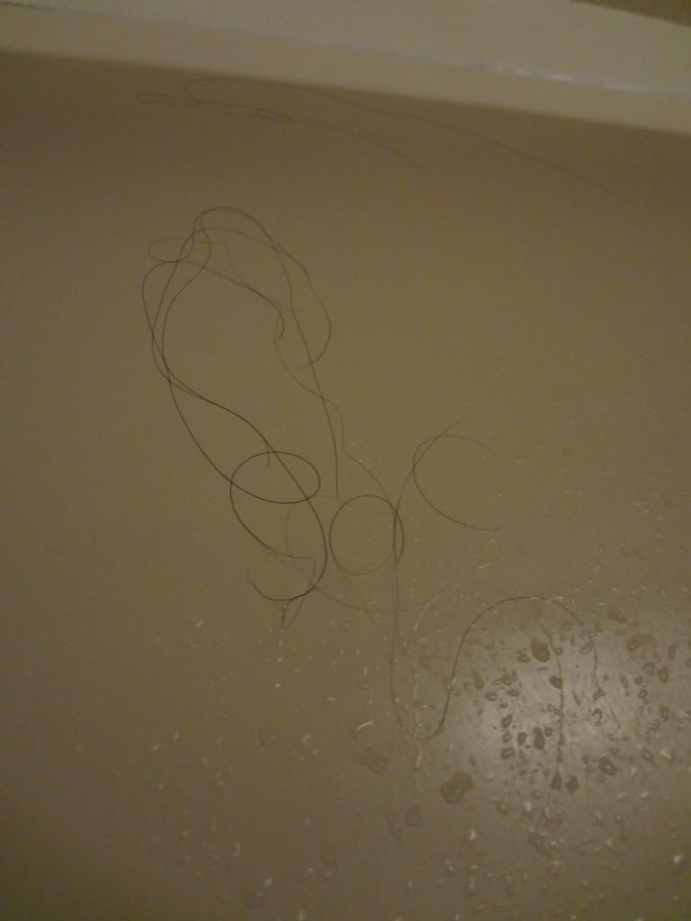How is it that when you shave and a few whiskers...1/32" long in the sink or on the top of the sink is like a national emergency. But then you go take a shower and you see THIS!!!!