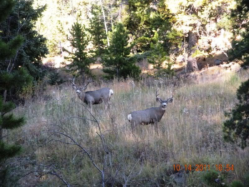 I'm seein' big Mule bucks this year, moreso than the last few. Less Elk, more deer...this dude in the background of this pic is/was one huge m*****-f***** (pic does not do justice but....check him out).