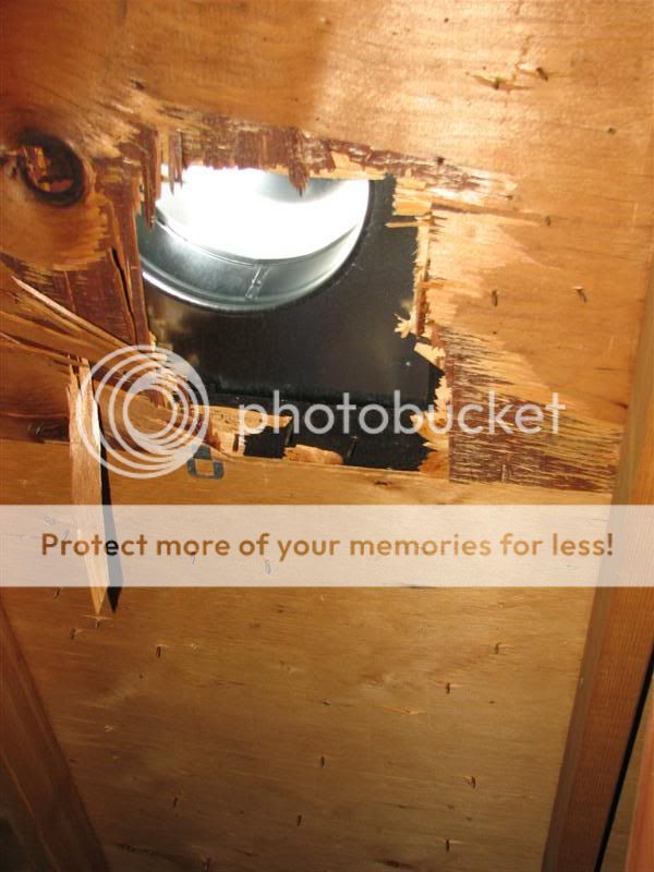 I am not a roofer but I would think that if I wanted to put in a vent I would measure and cut a hole in the roof not take a hammer and beat a hole in it. Or is this normal?![]()