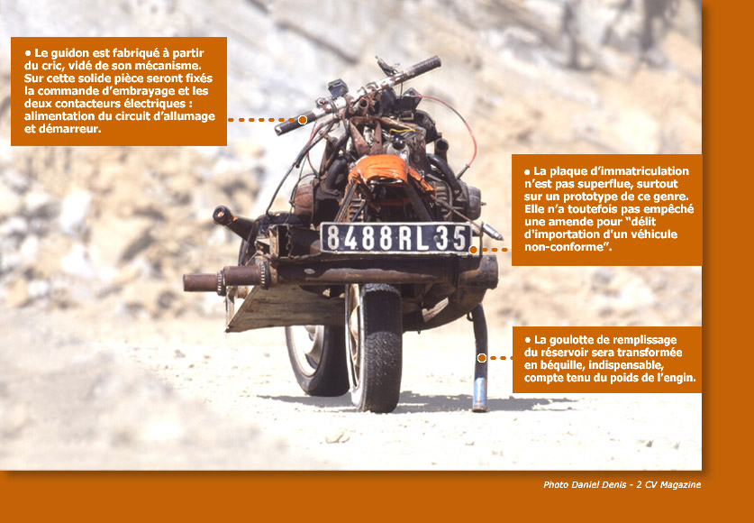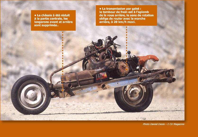 Basic story; some French guy driving around Africa where he shouldn't be turns his broken Citreon 2CV into a motorcycle to get out of the desert.