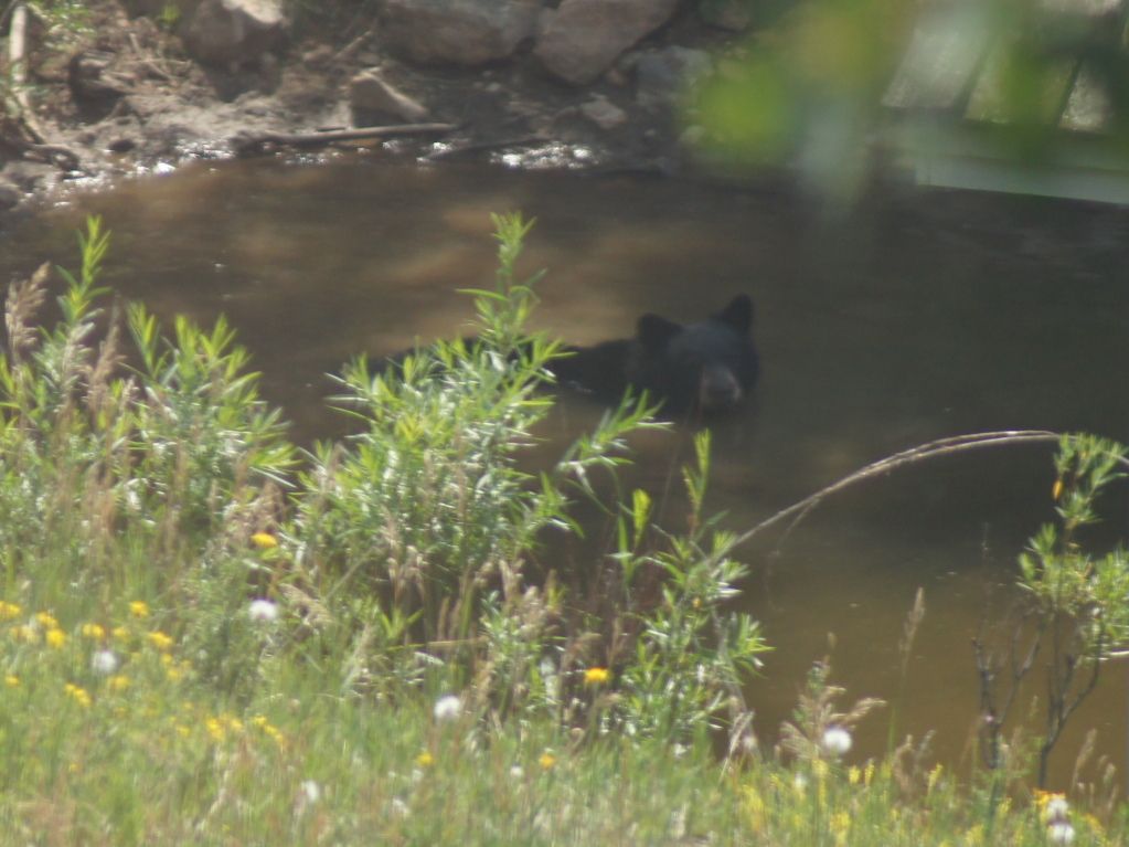 This little one was first spotted last year with a sibling and momma and has since "moved into the area" to stake a claim. Has been making a lot of appearances over the past few months but today we finally caught some pics of a favorite past-time, bathing. This is at a small water-shed down below my place with a retention pool, this cat comes-up and goes for a swim about once a day. Pics are not that good but...humorous live, like watchin' a little kid at a swimming pool. Excellent looking animal, very healthy so far...