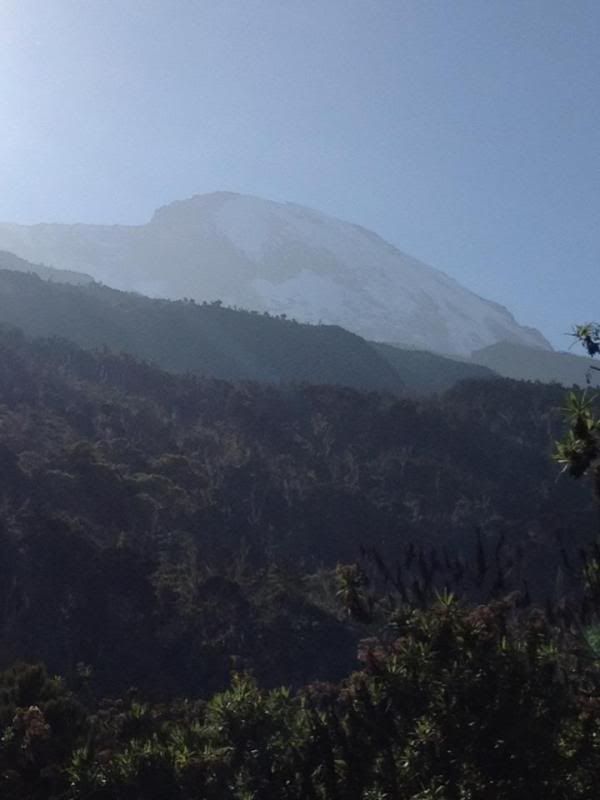 After a full day spent hiking through rainforest you reach Machame hut where you camp for the night. When you step off the next morning it’s a steep climb through moorland (kind of a border land between rainforest and high desert). About halfway through the morning you’re given your first glimpse of the summit.