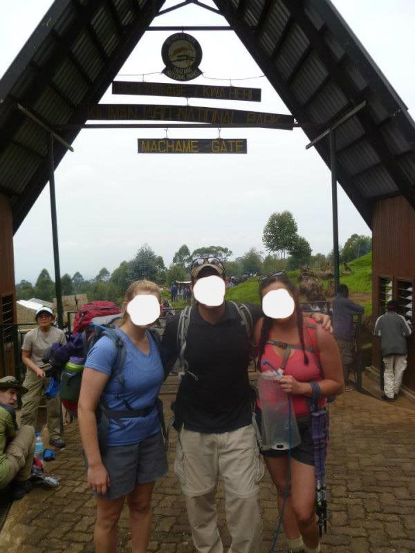 At Machame Gate with my two little sisters.