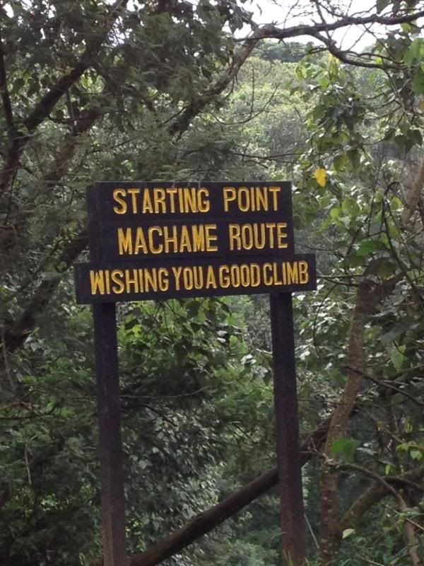 The climb starts off at Machame gate. The porters are organized and load their gear (20kg of company/client gear plus whatever they are bringing) while the tourists loiter around. Once the group is ready to start go the guide leads out with the phrase that you will hear about a thousand times before you get back; Pole pole (Pul-A, Pul-A), which means slowly, slowly.