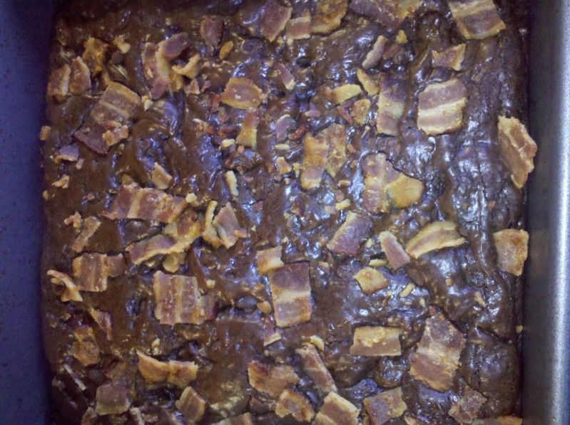 Scratch-made brownies made with 65% Santander Chocolate, Roasted Cacao Nibs and APPLEWOOD SMOKED BACON