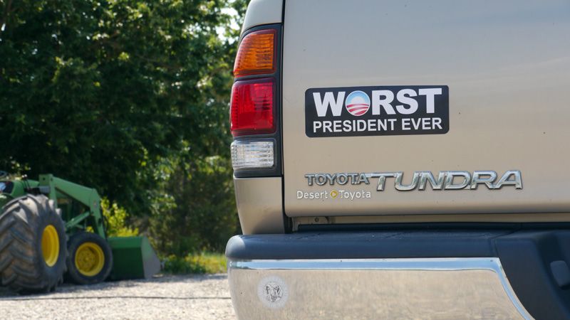 Originally Posted by Fentonite I believe that an Obama sticker on the gas door is an invitation to use the gas tank as a urinal. I think it's a law or something. That, or just shove some corn husks down there. All those ethanol requirements et al!
