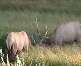 I shot this a couple years ago up in Rocky Mountain Nat. Park, finally got around to putting it in my Photobucket album. These two bulls were just playing around, maybe practicing, maybe a father teaching a son....I don't know. But I can guarantee they were doing this for the tourists! They were right off the road, and there were cars and people lined up for a couple hundred feet. It was very cool to watch.