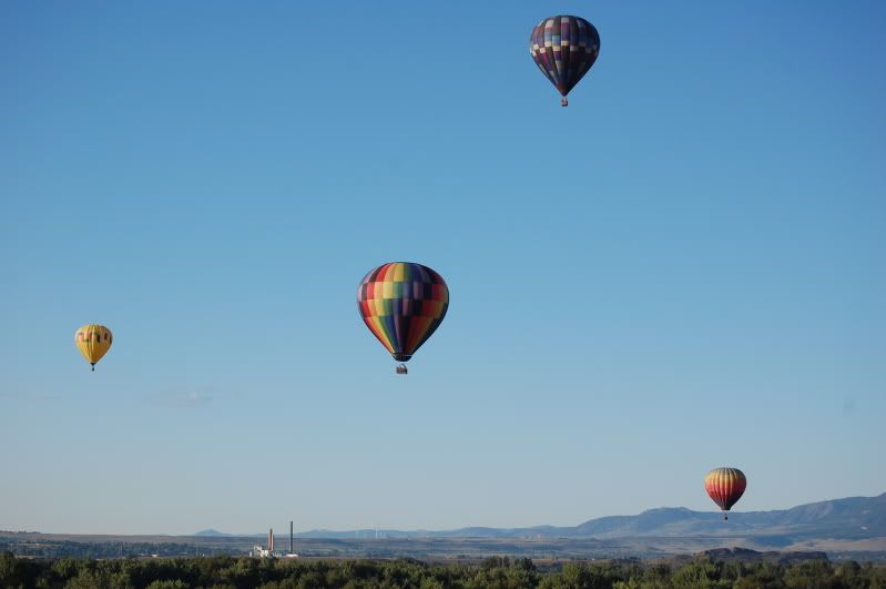 Just topped the hill west of I-25 on Hwy 7(vista ridge) and can see about half dozen hot air balloons floating around. Cool to watch them.