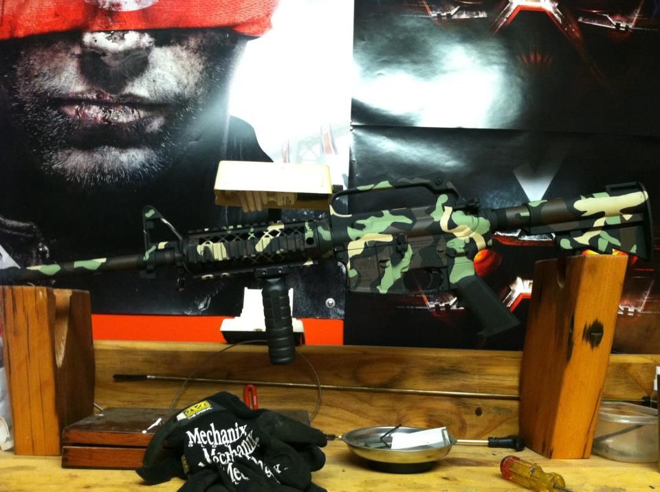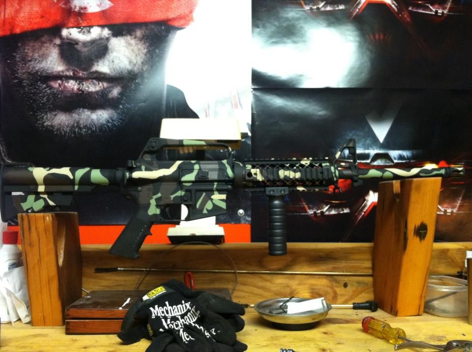 Thanks for the input guys, yeah thats a spade I had a pack of playing cards laying around and it was just one of those on the fly ideas you throw into a project while your doing it. I dont know yet if i want to camo my tantal though. Im going to paint the receiver and rough it up to match the rest of the gun and if i dont like it like that im going to camo it, just having trouble remembering what you said you used to do the aging like you did on your rifle Justin.