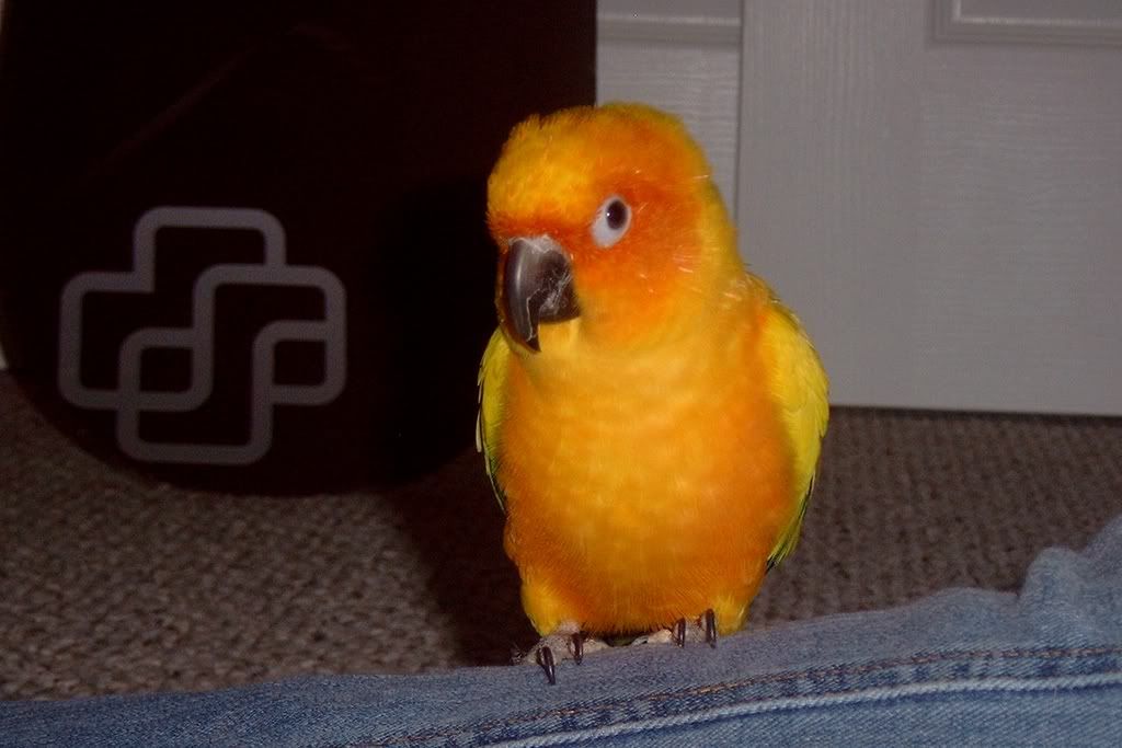 Nice looking bird I had a blue crown conure for ten years got rid of him about a year ago. I sure hope you know what you got yourself into they are great but also the biggest pain in the arse you could ever imagine.