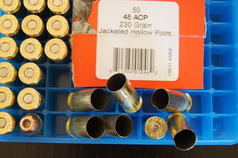 Prior to shooting my defense ammo in each weapon I also slipped-in some Bitteroot Valley X-treme Defense 45 ACP 230 Grain JHP, a box I had picked-up earlier this year on a whim at show. My HK experienced issues (that freaked me out a bit) and then...the same with my 1911. I have 27 rounds of this crap sittin' here still...I gave up on it. I had multiple FTE on both platforms, 2 FTE's and one light-strike on the HK and 4 FTE's on the 1911...No limp-wristin' here and these weapons are PROVEN but...there are problems with this lot of BRV.