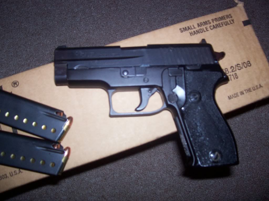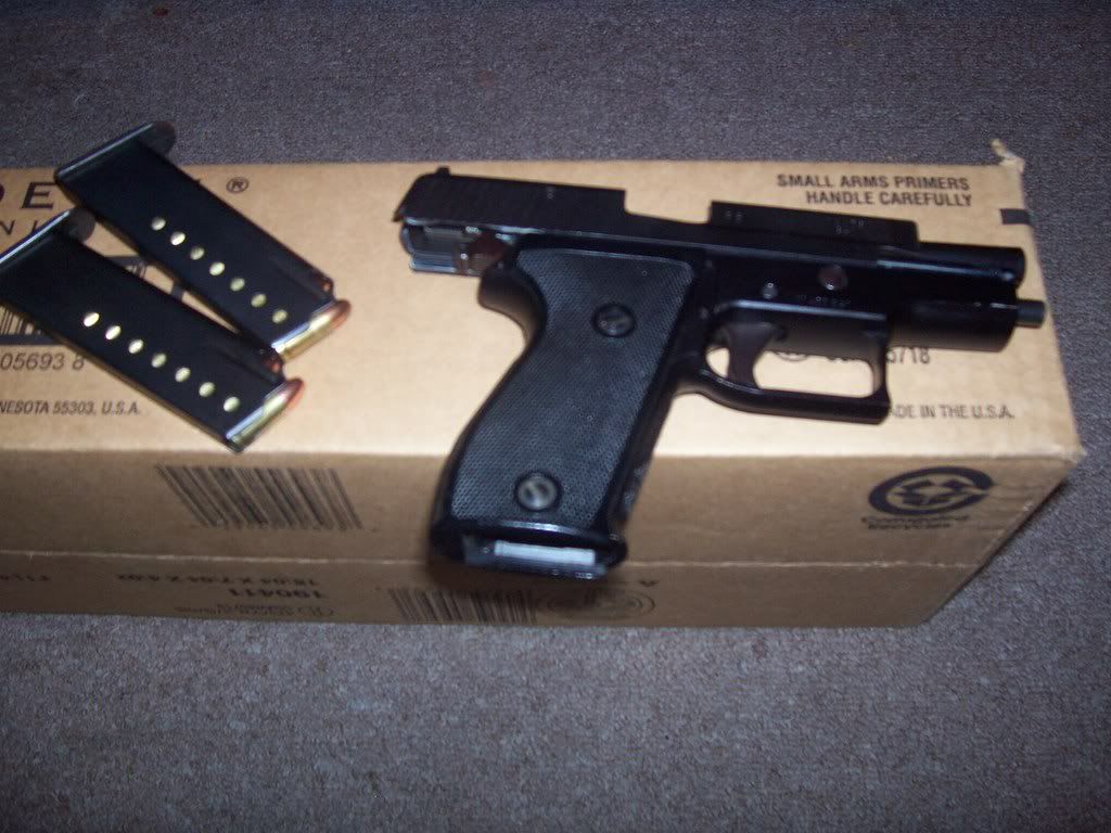 I've seen alot of these floating around latley, but none in as great of shape as this one, with a holster and 2 mags, for $300.00 bucks its a deal that cant be beat for a sig imho.