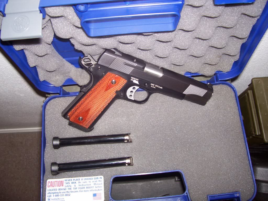 That is a pretty clean looking 1911. I keep debating of buying one, just to say "Hey I got a 1911 too." but the cost of .45ACP ammo kinda keeps me away lol.