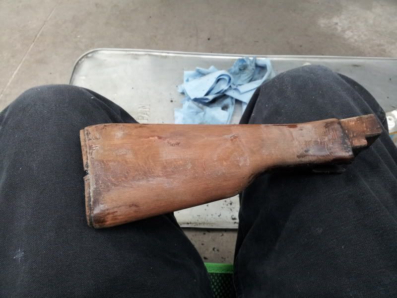 Now I have 24 hours of letting it set and it gets another coat of the Tung Oil. I think I could have spent a bit more time on the buttstock though. It came out a bit dark. Some of the varnish from before the rattle can didn't get pulled out with the paint thinner. Ah well, it is supposed to be in the trash can so not a big deal.