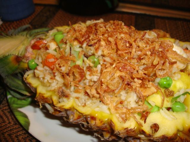 Thai fried rice was my favorite dish when I was in Thailand. They use to serve it in a baked pineapple. Here's some pics from when I was there: